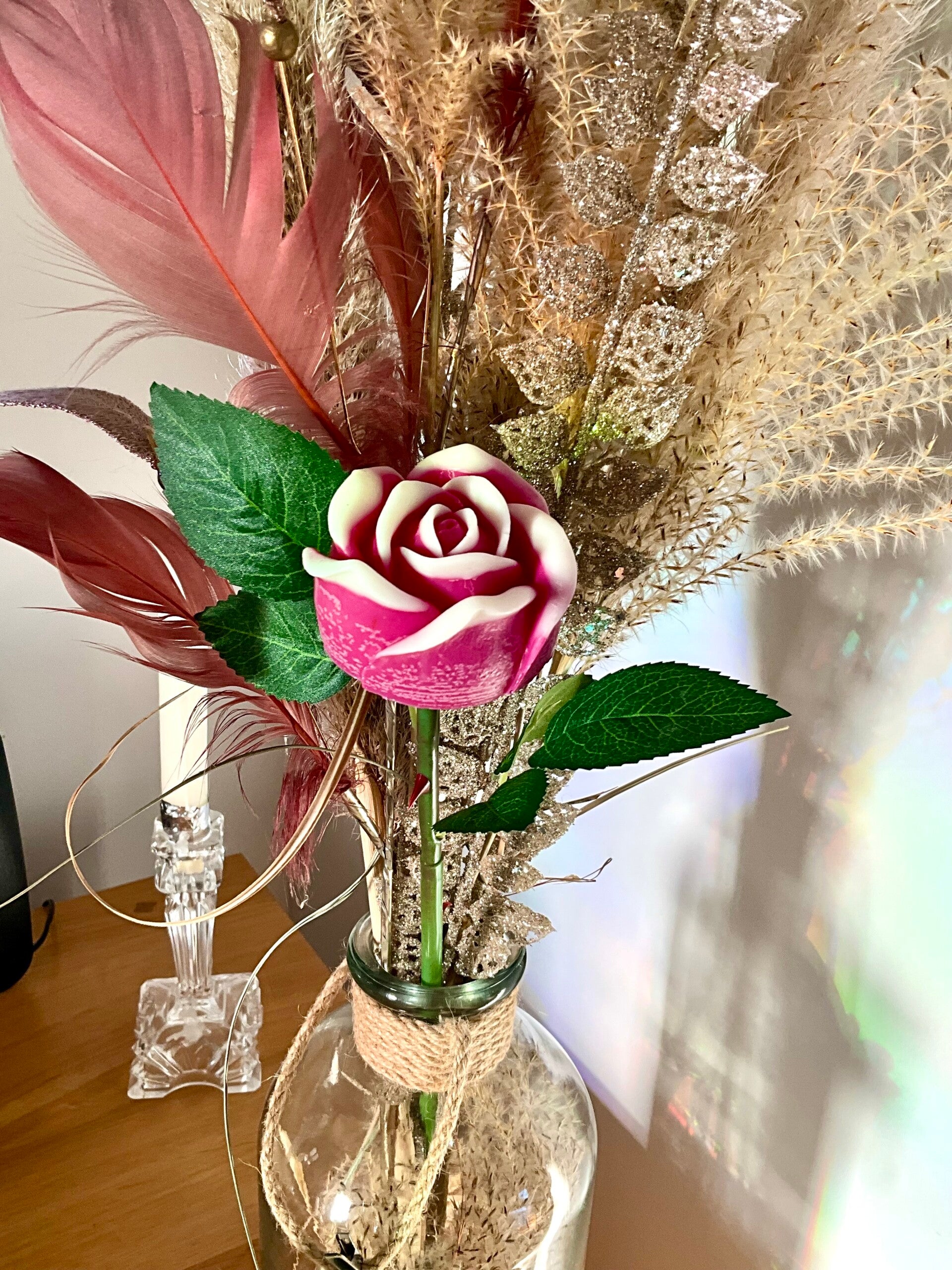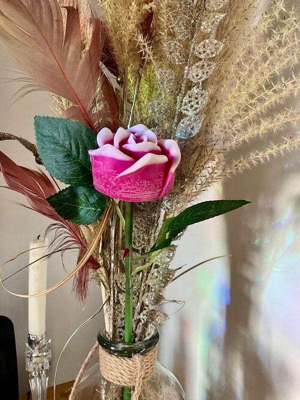 Apportez une touche d'élégance et de sérénité à votre intérieur avec notre rose fondante, une pièce artisanale unique alliant décoration bohème et haute parfumerie.