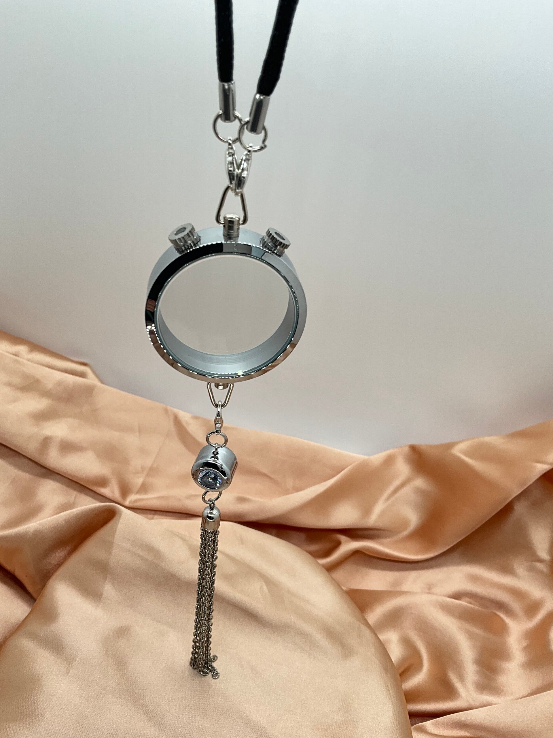 Sublimez l'intérieur de votre véhicule avec ce diffuseur au design "bijou" unique. Suspendu par son cordon noir, ce modèle en métal argenté allie l'éclat d'un brillant à l'élégance d'un pompon en chaînettes.